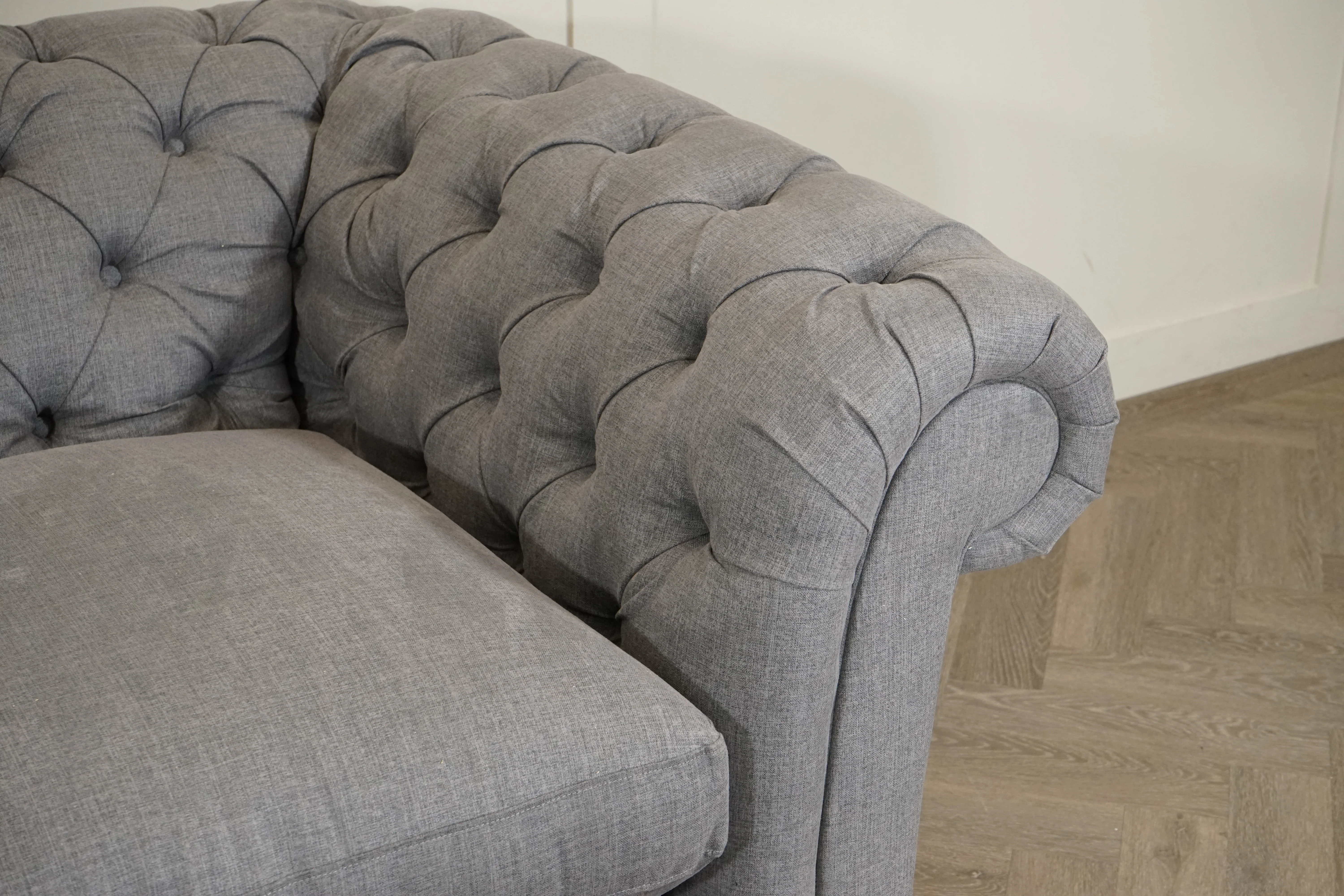 Traditional charm meets everyday comfort with the Cromwell Large 3 Seater Sofa, a timeless design upholstered in soft, steel-toned weave fabric. With its classic Chesterfield influence, this piece brings elegant curves and deep comfort into any living space.