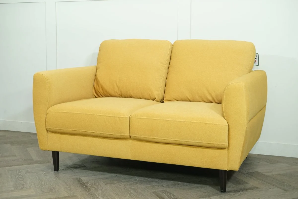 Bring a burst of sunshine into your living space with the Megan 2 Seater Sofa, upholstered in a bold sunflower yellow fabric. This compact sofa combines playful colour with sleek, modern lines, making it the perfect statement piece for contemporary interiors.
