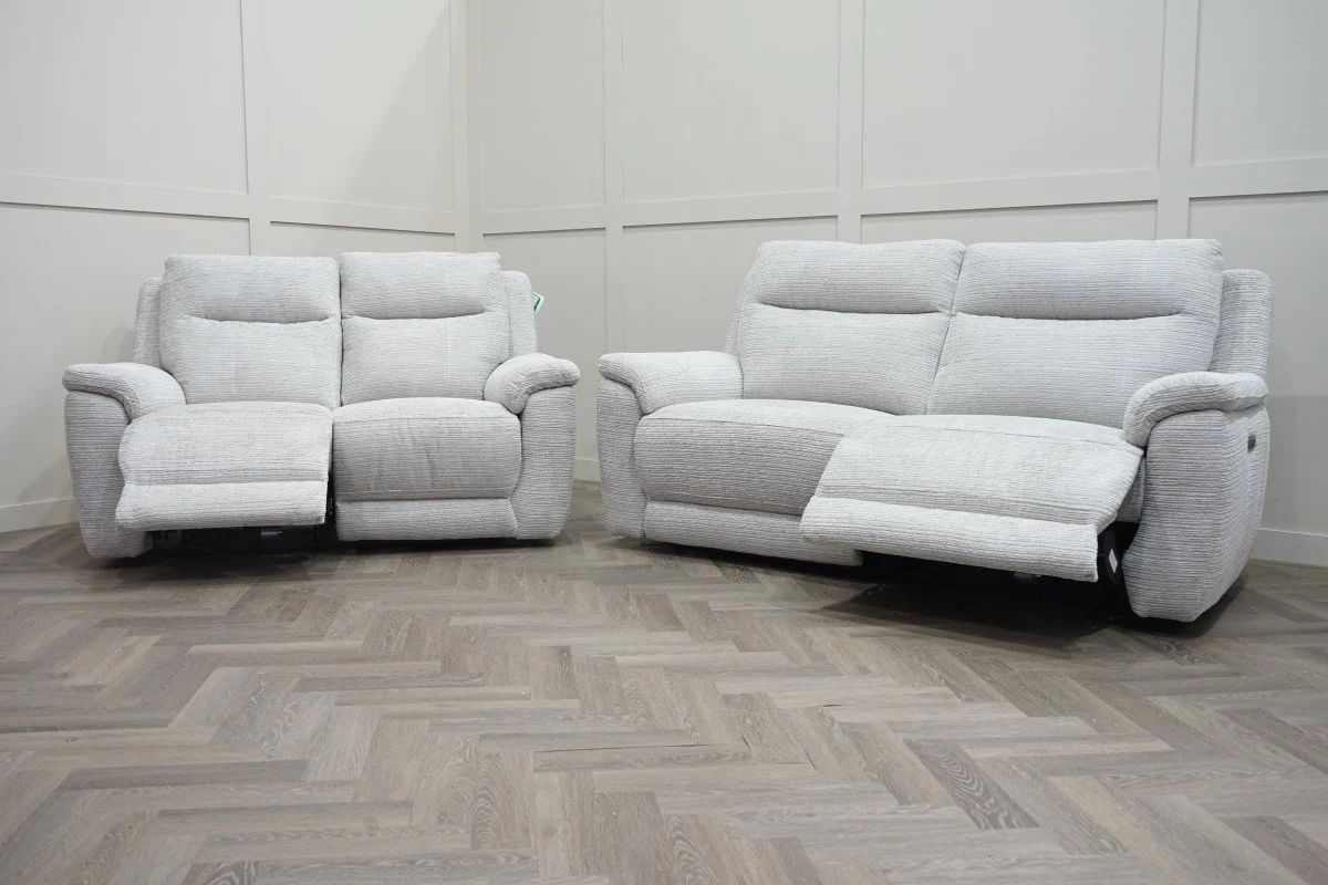 - 3-seater & 2-seater power recliner sofas in Silver Chenille Fabric