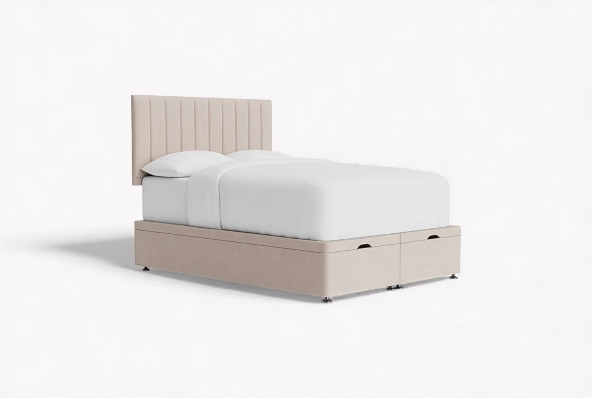 - End-lift ottoman base offering generous hidden capacity – ideal for bedding, cushions, and seasonal items